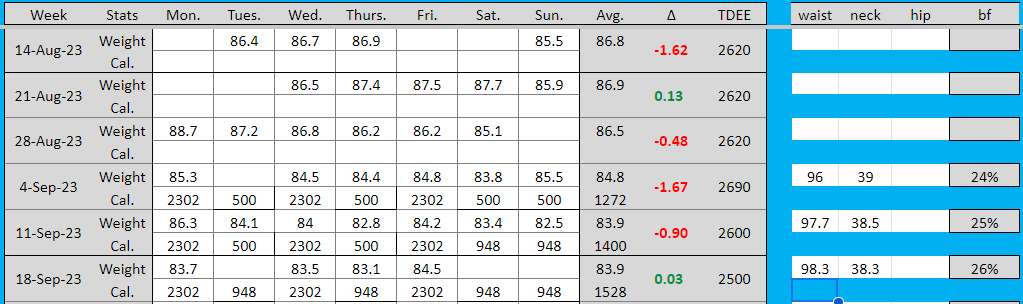 TDEE Tracker for 2023 Week 38Diet Day SnapshotEating Day Snapshot