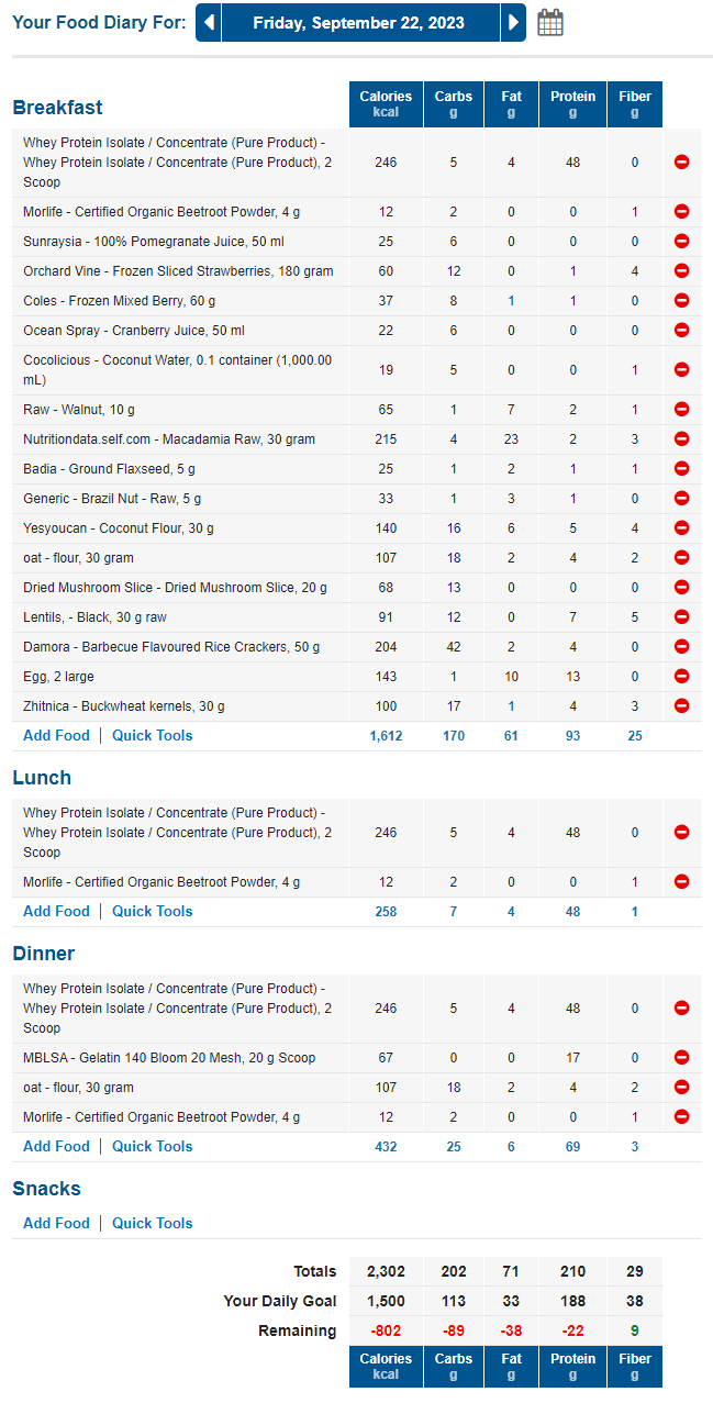 Had an unscheduled carbohydrate binge on Thursday, 21st September 2023 of 350grams of Rice Crackers (~1400 Cal), after testing sipping on Glucose Water (note below).